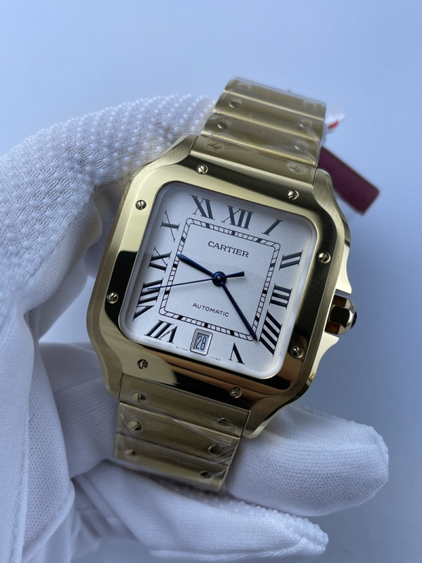 • (준비완료/특급배송)NO.1765/3K공장 까르띠에 산토스 드 화이트다이얼 옐로우골드 40MM 브슬 라지